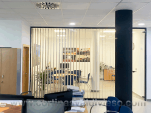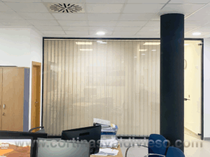 Cortina Vertical fabricada con lamas de Polyscreen® para una perfecta gestión de la luz solar.